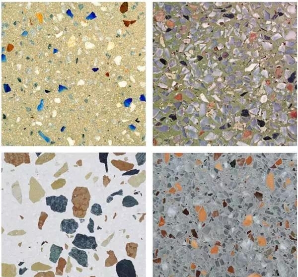 水磨石(也稱磨石)是將碎石、玻璃、石英石等骨料拌入水泥粘接料制成混凝制品后經(jīng)表面研磨、拋光的制品。這么抽象的說明你肯定想不起它的樣子,一張圖就可以喚醒你暴露年齡的記憶哦……