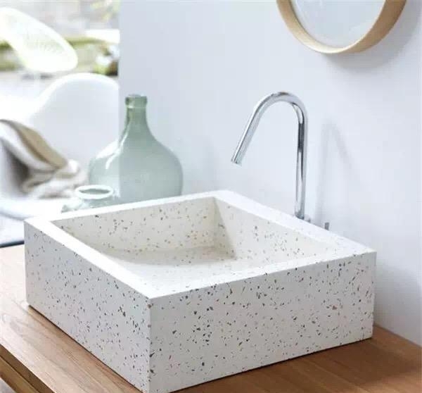 很眼熟吧?沒錯!你印象里曾經(jīng)學校、醫(yī)院樓道的標配,另外還有傳統(tǒng)建筑的外墻面……都是水磨石。是不是感覺這都已經(jīng)是一個世紀前的產(chǎn)物了?其實水磨石是相當耐磨耐用的,只是略顯廉價。好在如此有內(nèi)涵的材質(zhì),在設(shè)計師的腦洞里又煥發(fā)了新生。如同之前火爆的水泥和大理石一樣,從桌椅、水槽到小物件,有些雖然只是用了水磨石的顏色和紋理,但其成為家裝爆品已是必然。